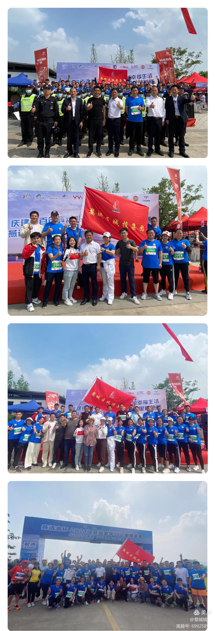 賽前,區(qū)委書記蔡艷,區(qū)委常委、區(qū)政府黨組成員杜建明與城投跑團(tuán)合影留念并為他們加油鼓勁!