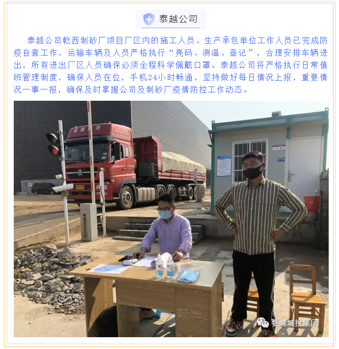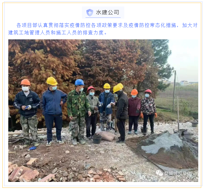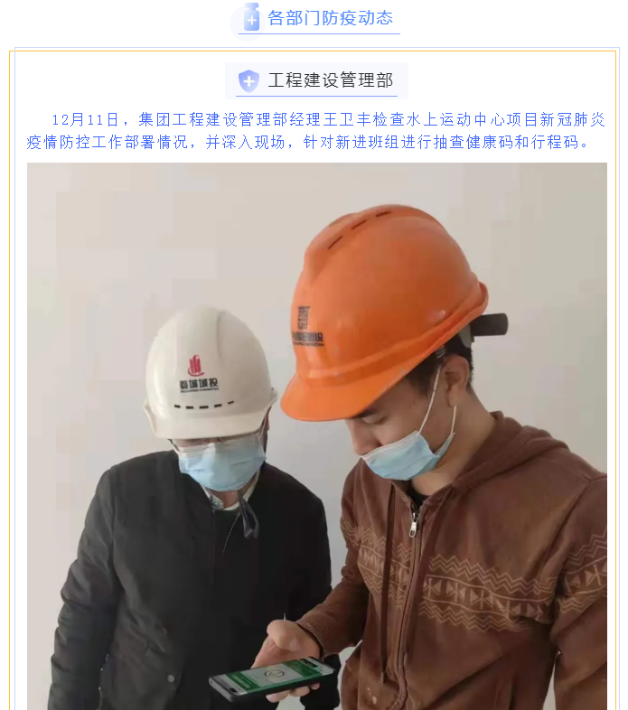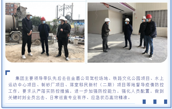 為貫徹落實(shí)省、市、區(qū)疫情防控工作視頻會議精神,婺城區(qū)城投集團(tuán)全員行動(dòng),在集團(tuán)疫情防控工作體系的框架下,分別以職能部門和子公司、項(xiàng)目為主體,制定切合實(shí)際、有操作性的疫情防控方案,同時(shí)組織紀(jì)檢專班力量,成立督查應(yīng)急小組,對各工地(項(xiàng)目)疫情防控措施設(shè)置情況進(jìn)行督查督辦,集團(tuán)上下全面緊起來、嚴(yán)起來,疫情防控工作氛圍濃郁。