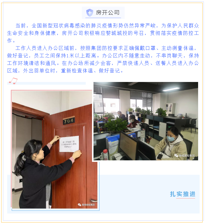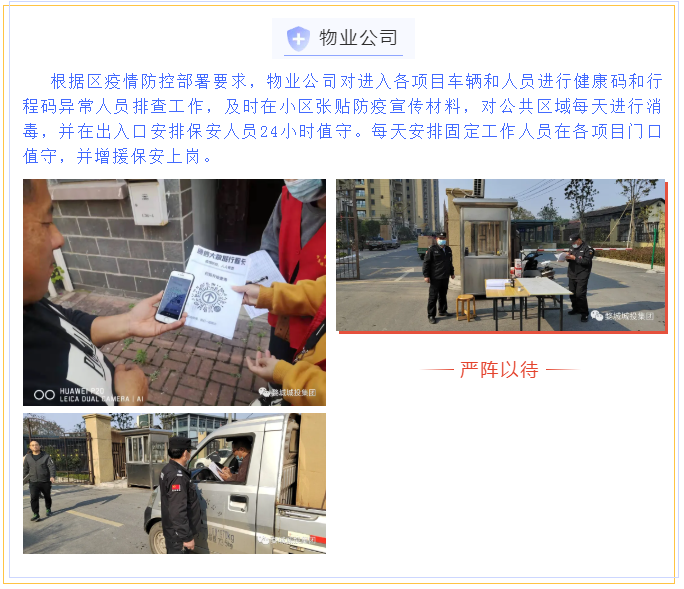 繼省、市、區(qū)疫情防控工作視頻會議召開后,婺城區(qū)城投集團(tuán)深刻認(rèn)識到疫情防控形勢的嚴(yán)峻性、復(fù)雜性、緊迫性,從“平時(shí)”模式轉(zhuǎn)入“戰(zhàn)時(shí)”機(jī)制,12月11日,集團(tuán)全面部署、立即落實(shí),第一時(shí)間印發(fā)《關(guān)于進(jìn)一步健全完善疫情防控工作體系的通知》,制定《金華市婺城區(qū)城鄉(xiāng)建設(shè)投資集團(tuán)有限公司疫情防控督查表》,在周末全員不休,集中精力開展重點(diǎn)項(xiàng)目和主要場所疫情防控攻堅(jiān)的基礎(chǔ)上,組織其余干部職工前往聯(lián)系社區(qū),會同社區(qū)工作人員開展疫情防控工作,壓緊壓實(shí)責(zé)任,以鐵的擔(dān)當(dāng)、鐵的紀(jì)律對疫情防控工作進(jìn)行再細(xì)化、再落實(shí),一鼓作氣堅(jiān)決打贏這場疫情防控阻擊戰(zhàn)。